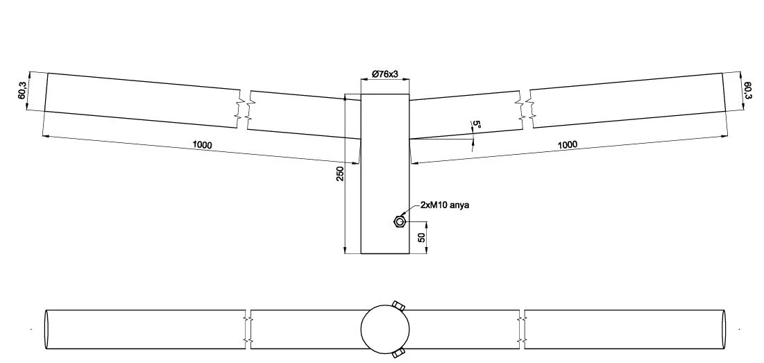Lámpakar 2ágú 100 cm kinyúlású, horganyzott, 100°, SBS-HK-60/1/2/3