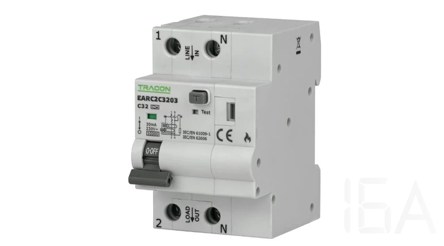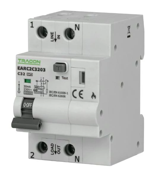 Tracon AFDD+ kombinált ívhiba védelmi készülék (3in1), AFDD-2P/B/32A/30mA, A' osztály, EARC2B3203