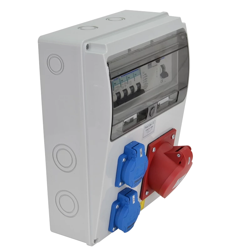 Tracon ipari doboz szerelt, vezetékezett, kismegszakítóval és Fí-relével 2X(2P+F)+1x(5P16A) dugalj, IP44, TDB04-11MV Áraink darabárak, A termék kiszereléseire vonatkoznak! A termék kiszerelése 1 darab