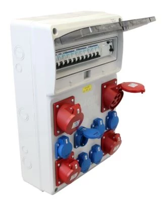 Tracon ipari doboz szerelt, vezetékezett, kismegszakítóval és Fí-relével 4X(2P+F)+2x(5P16A)+2x(5P32A) dugalj, IP44, TDB03-12MV Áraink darabárak, A termék kiszereléseire vonatkoznak! A termék kiszerelése 1 darab