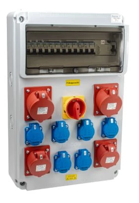 TP ipari doboz szerelt, vezetékezett, kismegszakítóval 4X(2P+F)+1x(5P16A)+1x(5P32A) dugalj, IP44, 3320-004-5700K Áraink darabárak, a termék kiszereléseire vonatkoznak! A termék kiszerelése 1 darab.