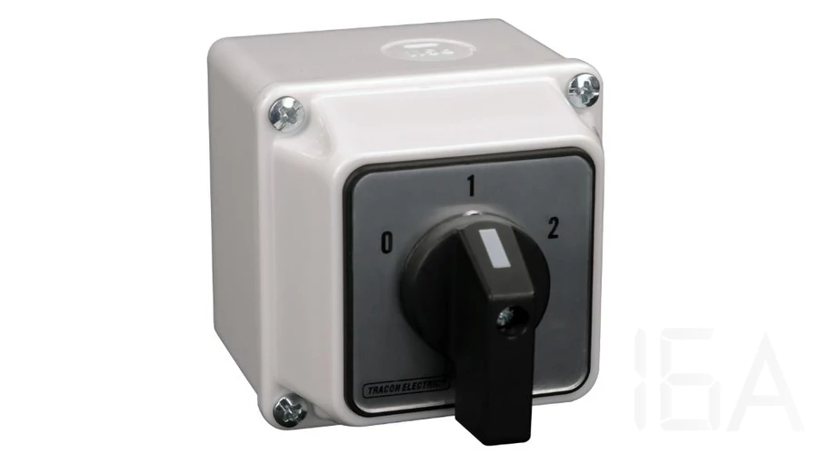 Tracon Tokozott választókapcsoló, 0-1-2, 32A, 2x4P, 11kW, 64x64mm, 90°, TKB-329/4T Áraink darabárak, A termék kiszereléseire vonatkoznak! A termék kiszerelése 1 darab