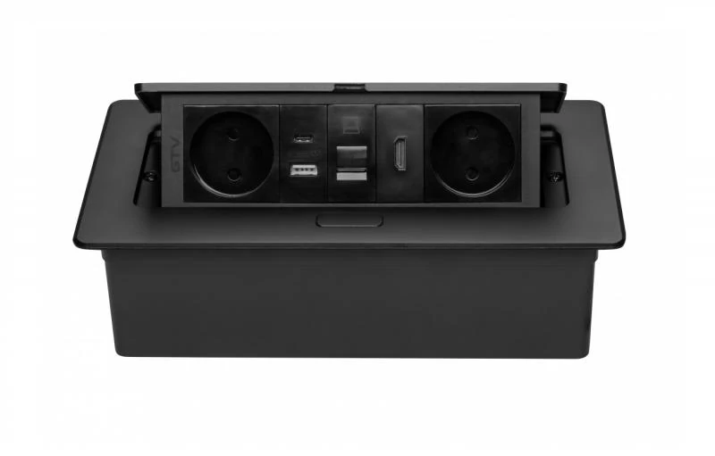 GTV pultba süllyeszthető konnektor, 1db 230V-os dugalj 1db USB-A és 1db USB-C aljzat, rejtett gombbal kinyitható, 1.5m kábellel, műanyag, fekete szín, AE-PB1SAVA-20N Áraink darabárak, a termék kiszereléseire vonatkoznak! A termék kiszerelése 1 darab.