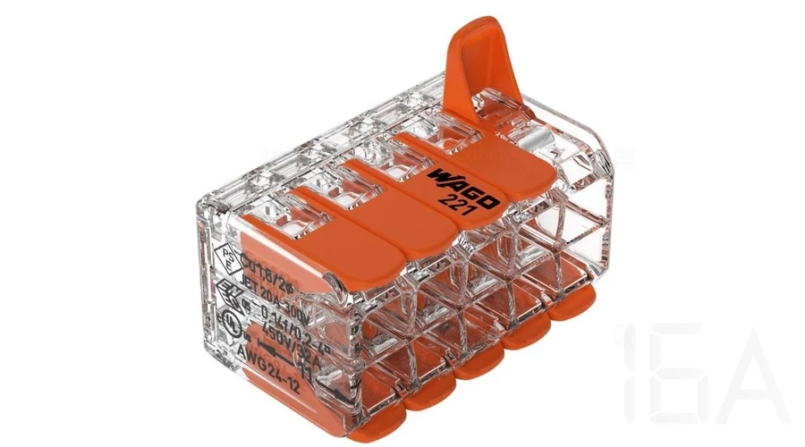 Wago 221-415 univerzális összekötő 5x4mm2-es mindenféle vezeték típushoz Áraink darabárak, a termék kiszereléseire vonatkoznak! A termék kiszerelése 1 darab.